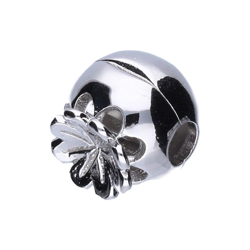 ÖFFNUNGSPERLENANHÄNGER FÜR EIN MODULARES ARMBAND MIT EINEM DURCHMESSER VON 3 mm, 925 SILBER, RHODIUMBESCHICHTET, BLUME.
