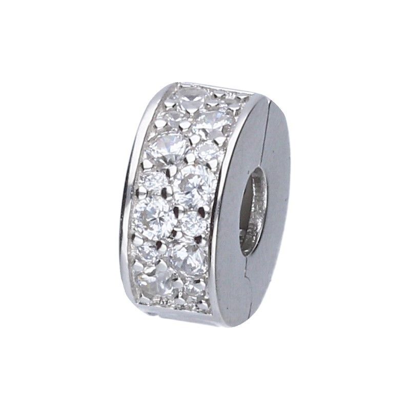 ÖFFNUNGSPERLENANHÄNGER FÜR EIN MODULARES ARMBAND, 3 mm DURCHMESSER, 925 SILBER, RHODIUMBESCHICHTET, WEISSER ZIRKONIA.