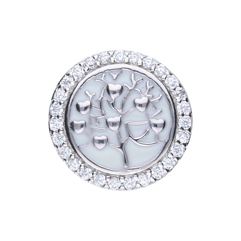 ÖFFNUNGSPERLENANHÄNGER FÜR EIN MODULARES ARMBAND, DURCHMESSER 3 mm, 925er SILBER, RHODINIERT, WEISSER ZIRKONIA PLUS EMAILLE, LEBENSBAUM.
