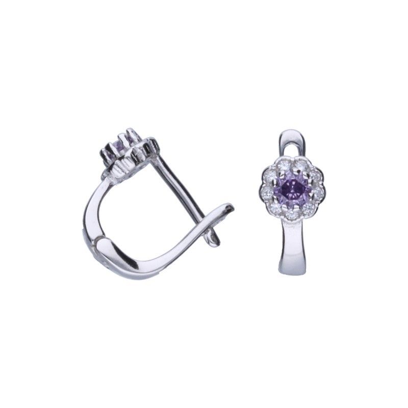 OHRRINGE MIT ENGLISCHER MARQUISE-KLEMME, 925 SILBER, RHODINIERT, AMETHYST UND WEISSER ZIRKONIA, BLUME.