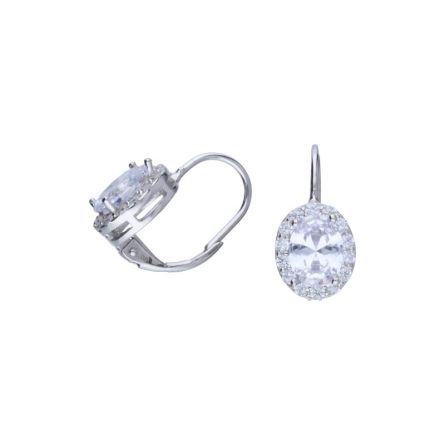 OHRRINGE MIT FRANZÖSISCHER MARQUISE-Klammer, 925er Silber, rhodiniert, weißer Zirkon, oval, Größe 9 mm x 11 mm.