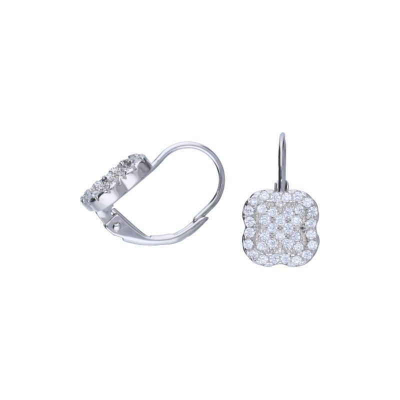 OHRRINGE MIT FRANZÖSISCHER KLEMME, 925 SILBER, RHODINIERT, WEISSES ZIRKONIA, ELEMENTABMESSUNGEN 9 mm x 9 mm.