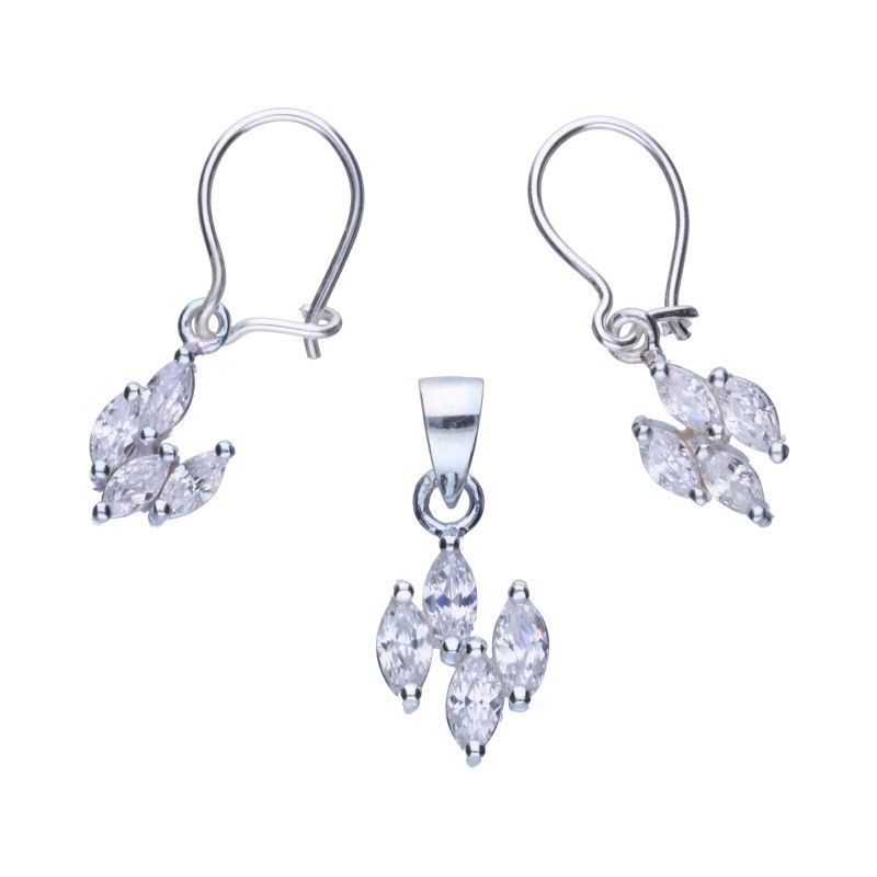 SET ANHÄNGER PLUS OHRRINGE, 925 SILBER, RHODINIERT, WEISSES ZIRKONIA, ABMESSUNGEN DES ANHÄNGERS OHNE BAND 9mm X 13mm.