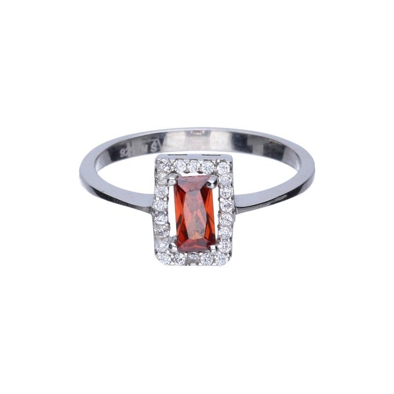 RING, 925er SILBER, RHODIUMBESCHICHTET, ZIRKONIA IN GRANAT UND WEISS, RECHTECKIG, GRÖSSE 9 mm x 6 mm.
