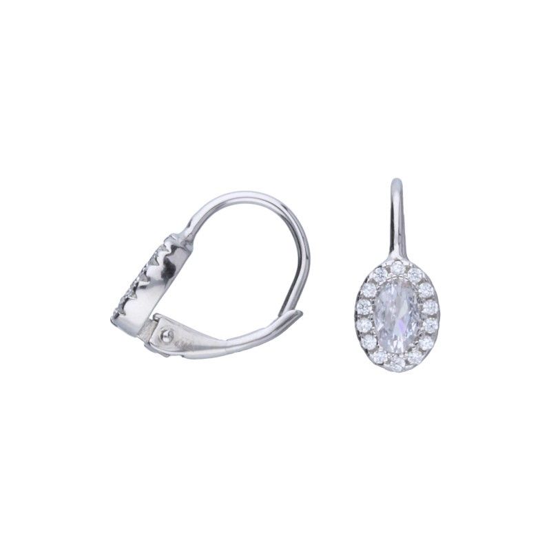 OHRRINGE MIT FRANZÖSISCHER KLEMME, 925 SILBER, RHODINIERT, WEISSER ZIRKONIA, OVAL, GRÖSSE 6 mm x 8 mm.