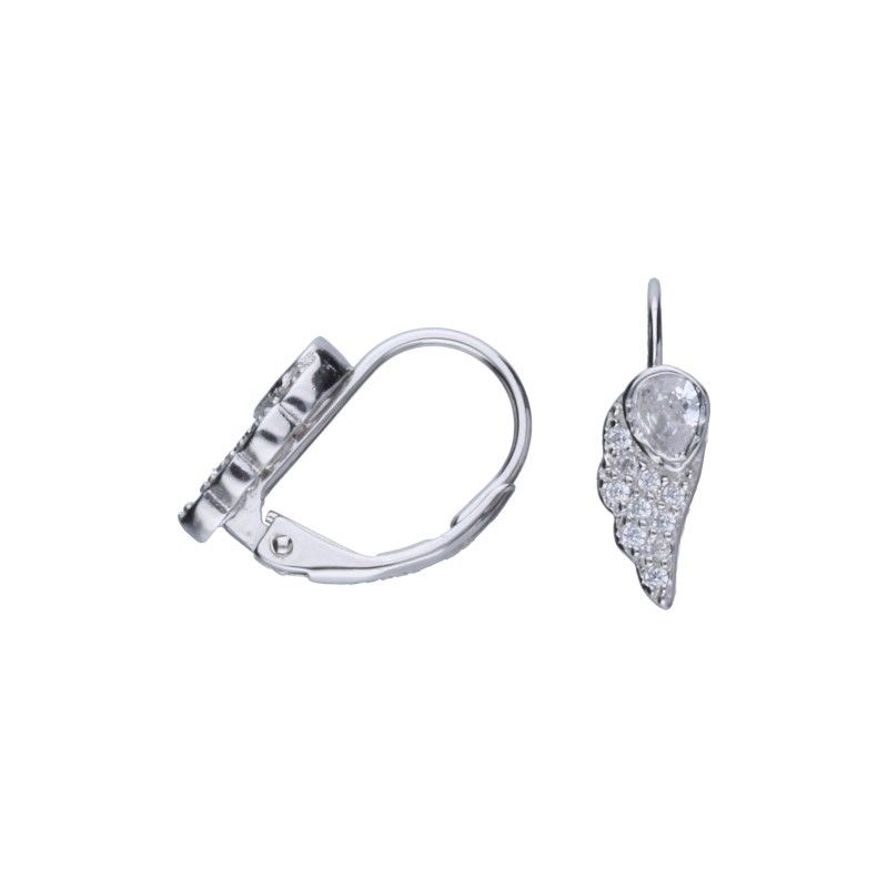 OHRRINGE MIT FRANZÖSISCHER KLEMME, 925 SILBER, RHODINIERT, WEISSER ZIRKONIA, FLÜGEL, FLÜGELGRÖSSE 11 mm X 5 mm.