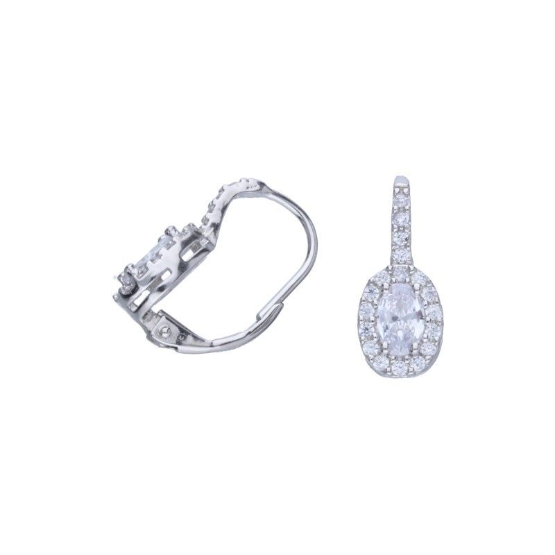 OHRRINGE MIT FRANZÖSISCHEM VERSCHLUSS, 925 SILBER, RHODINIERT, WEISSER ZIRKONIA, AUSZEICHNUNG, OVAL, GRÖSSE 8 mm x 10 mm.