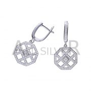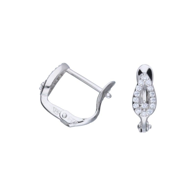 OHRRINGE MIT ENGLISCHER KLEMME, 925er SILBER, RHODINIERT, WEISSER ZIRKONIA, TRÄNE, MANDEL, GRÖSSE 5 mm x 9 mm.