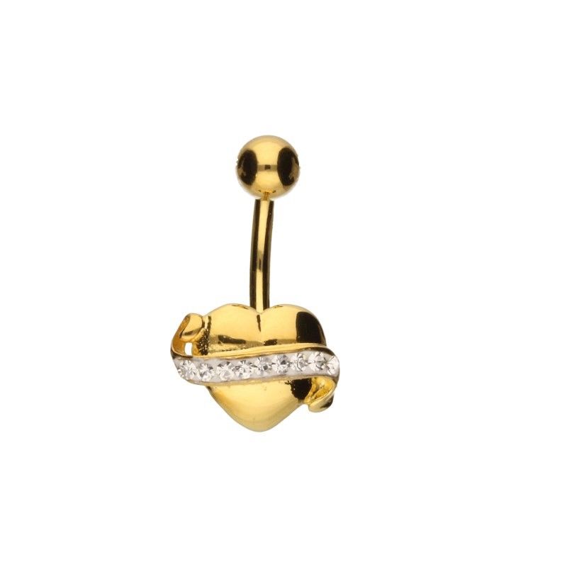 BAUCHRING, KOMBINATION AUS 925ER SILBER VERGOLDET MIT 24 KARAT GOLD UND CHIRURGENSTAHL, WEISSER ZIRKONIA, HERZ.