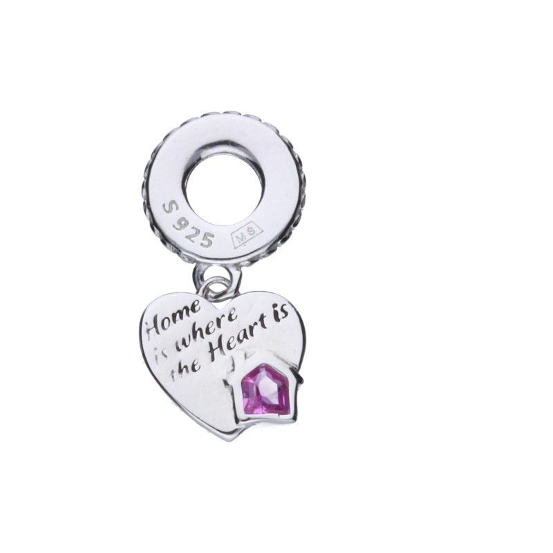 PERLENANHÄNGER PASST ZU MODULARARMBÄNDERN MIT EINEM DURCHMESSER VON 3mm, 925er SILBER RHODIUMBESCHICHTET, FUCHSIA ZIRKONIA, HAUS, HERZ MIT DER ANLEITUNG ZUHAUSE IST, WO DAS HERZ ES IST.