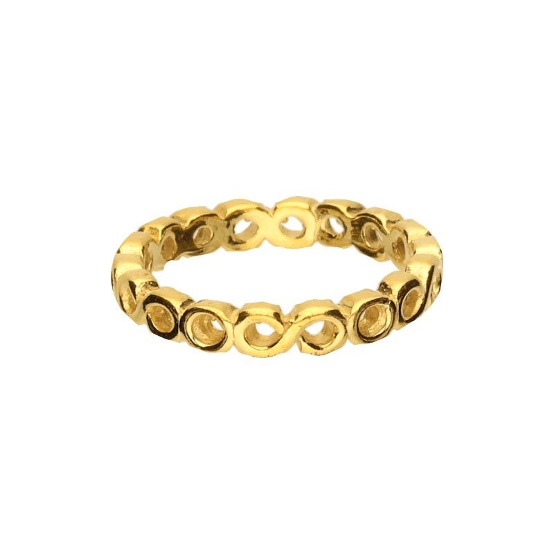 Dekorativer Ehering, 925er Silber, vergoldet mit 24 Karat Gold, durchbrochenes Muster aus miteinander verbundenen Unendlichkeiten.