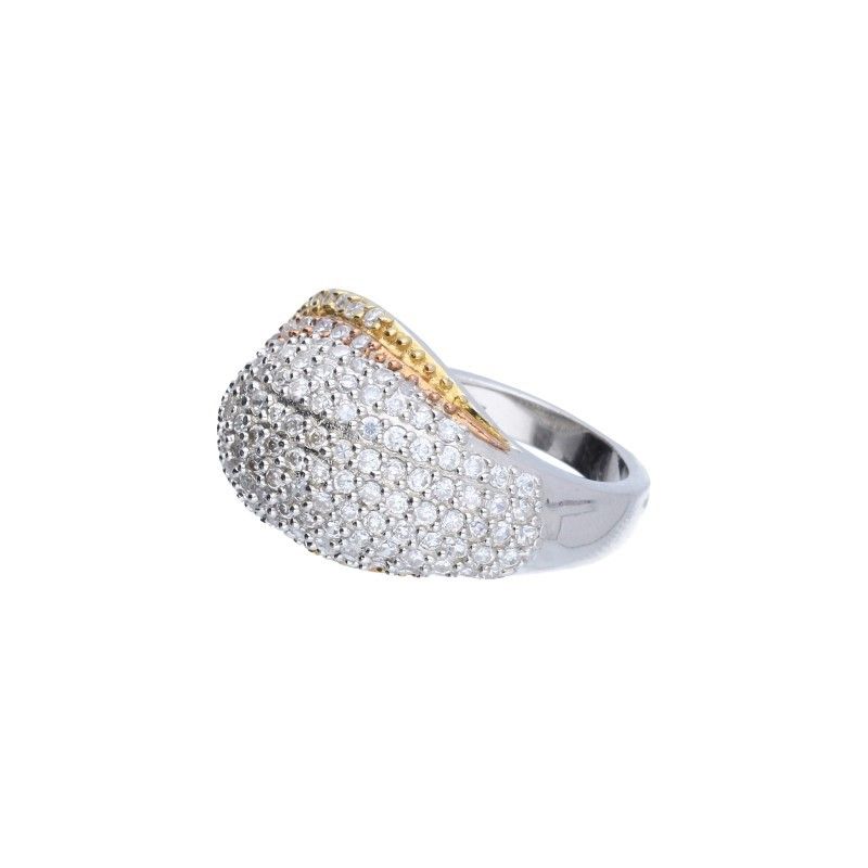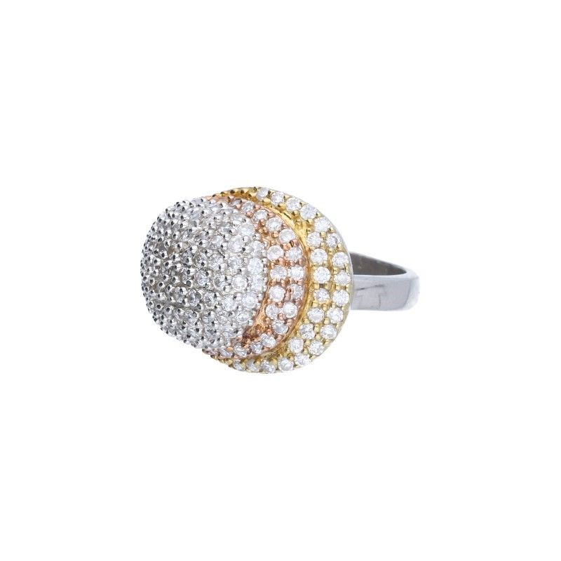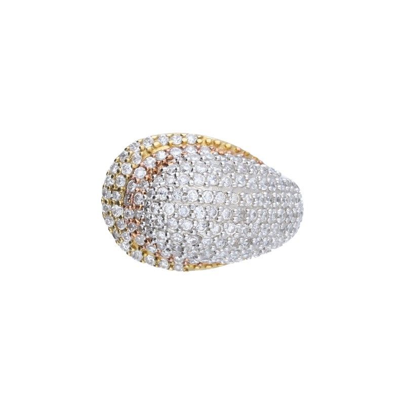 GROßER RING, KOMBINATION AUS 925ER SILBER, RHODIUM UND VERGOLDET MIT 24 KARAT GOLD, WEISSEM ZIRKONIA, BREITE 16 mm.