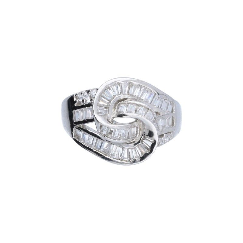 SATIAL-RING, 925er SILBER, RHODIUMBESCHICHTET, WEISSER RUNDER ZIRKONIA PLUS BAGUETTE-TYP, BREITE 15 mm.