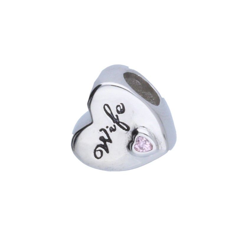 PERLEN-ANHÄNGER, GEEIGNET FÜR MODULARE ARMBÄNDER MIT EINEM DURCHMESSER VON 3 mm, PERLE, 925 SILBER RHODIUMBESCHICHTET, ROSA ZIRKONIA, HERZ MIT FRAU-INSCHRIFT, ABMESSUNGEN 10 mm x 10 mm.