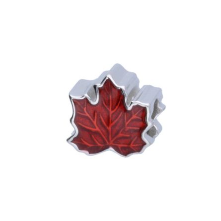 PERLENANHÄNGER, GEEIGNET FÜR MODULARE ARMBÄNDER MIT EINEM DURCHMESSER VON 3 mm, PERLE, 925er SILBER, RHODIUMBESCHICHTET, ROTE EMAILLE, BLATTGRÖSSE 11 mm x 11 mm.