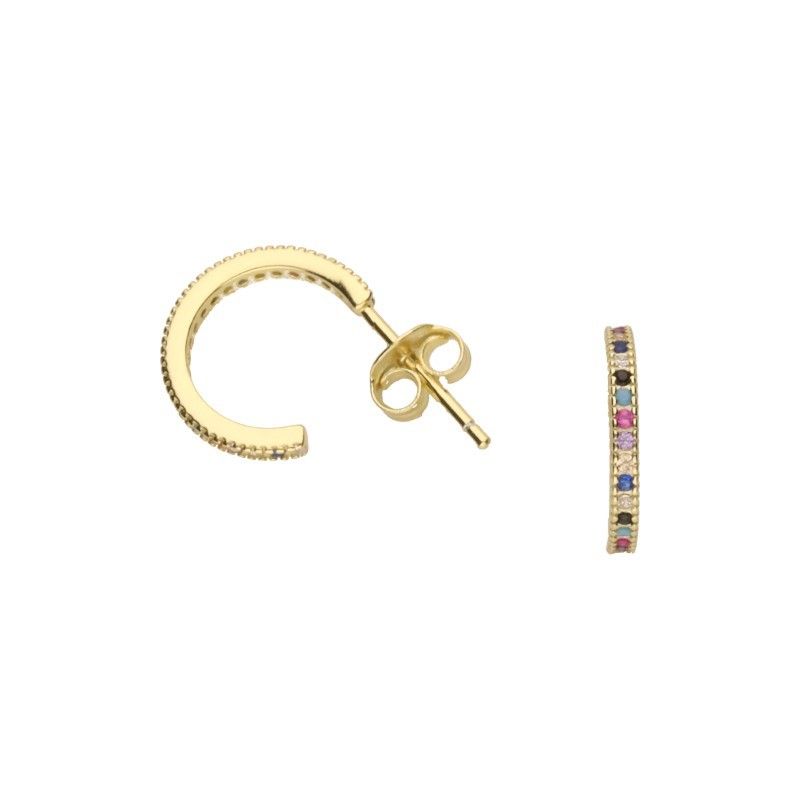 OFFENE OHRRINGE AUF STÄBCHEN, 925 SILBER, VERGOLDET MIT 24 KARAT GOLD, BUNTES ZIRKONIA, DURCHMESSER 12 mm.