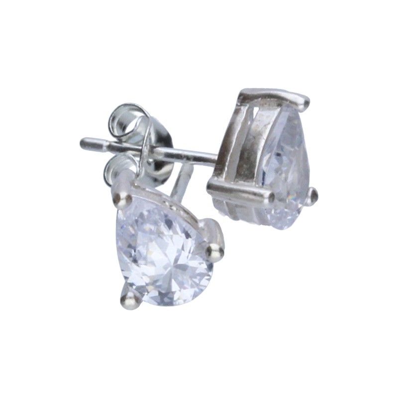 925 VERSILBERTE OHRRINGE AUF STÄBCHEN, VERSILBERTER ZIRKONIA, WEISS, GRÖSSE 8 mm x 6 mm, TRÄNE, TROPFEN, MANDEL.