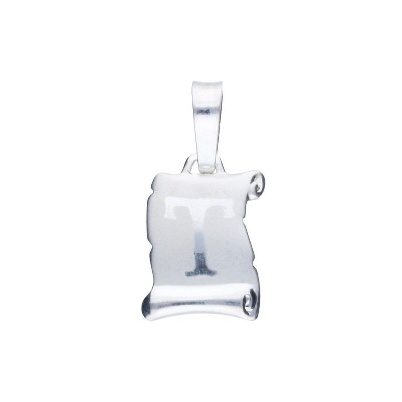 ANHÄNGER AUS 925er SILBER, VERSILBERT, TEILWEISE MATTIERT, ABMESSUNGEN OHNE BAND 15MM X 12MM, BUCHSTABE T AUF PAPYRUS. Auf Wunsch des Kunden kann jedes beliebige Muster zu einem zu vereinbarenden Preis hergestellt werden.