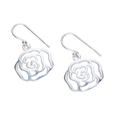 DURCHGEBRACHTE OHRRINGE MIT SCHARNIER, 925 VERSILBERTES SILBER, BLUMEN, ROSE, ABMESSUNGEN DER BLUME NUR 20 mm x 17 mm.