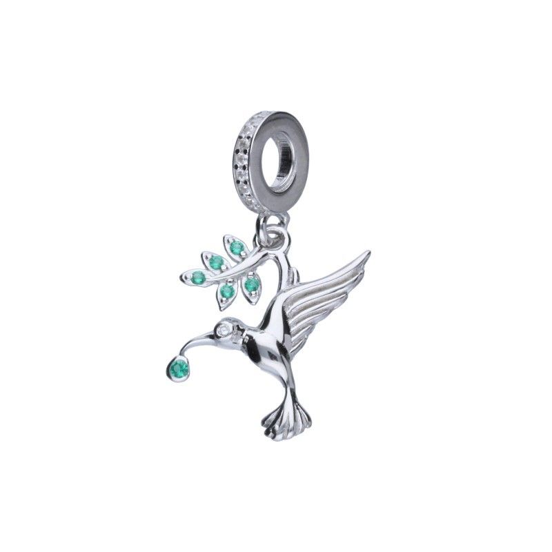 PERLENANHÄNGER GEEIGNET FÜR MODULARE ARMBÄNDER MIT EINEM DURCHMESSER VON 3 mm, 925er SILBER, RHODIUMBESCHICHTET, WEISSER UND GRÜNER ZIRKONIA, HUMBBING.