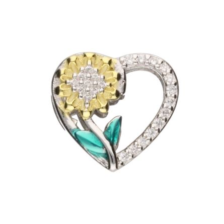 PERLENANHÄNGER PASST ZU MODULARARMBÄNDERN MIT EINEM DURCHMESSER VON 3 mm, KOMBINATION AUS 925er SILBER, RHODINIERT MIT 24 KARAT VERGOLDET, WEISSEM ZIRKONIA, HERZ, BLUME.