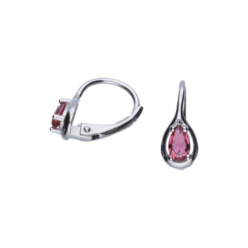 OHRRINGE MIT FRANZÖSISCHER KLEMME, 925 SILBER, RHODINIERT, ROSA ZIRKONIA, MANDEL, TRÄNE, TROPFEN, GRÖSSE 8 mm x 5 mm.