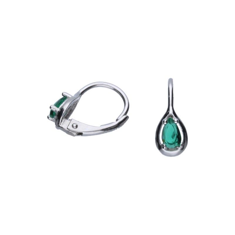 OHRRINGE MIT FRANZÖSISCHER KLEMME, 925 SILBER, RHODINIERT, GRÜNER ZIRKONIA, MANDEL, TRÄNE, TROPFEN, GRÖSSE 8 mm x 5 mm.