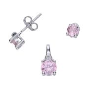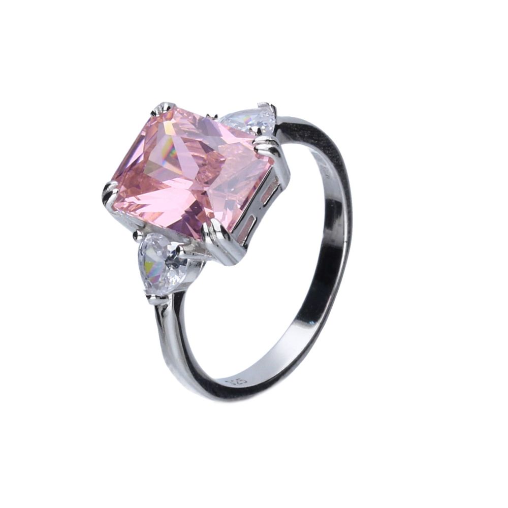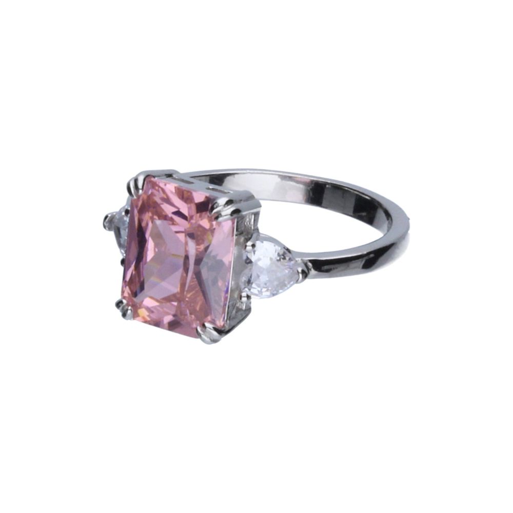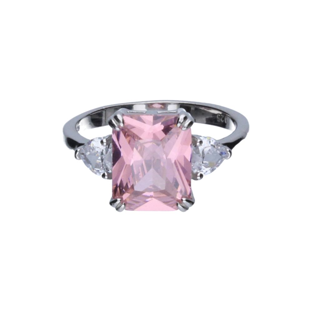 RING, 925er SILBER, RHODIUMBESCHICHTET, WEISSER ZIRKONIA PLUS ZENTRALER STEIN IN ROSA, GRÖSSE 10 mm x 8 mm.