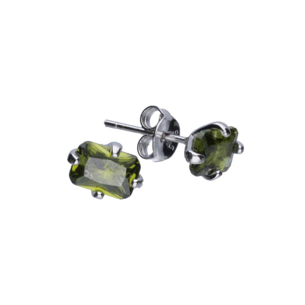 OHRRINGE AUS 925 STERLING-STERLINGSILBER, RHODIUMBESCHICHTET, GRÜNES ZIRKONIA IN CRASH-GRÜN, OHRRINGABMESSUNGEN 6 mm x 8 mm.