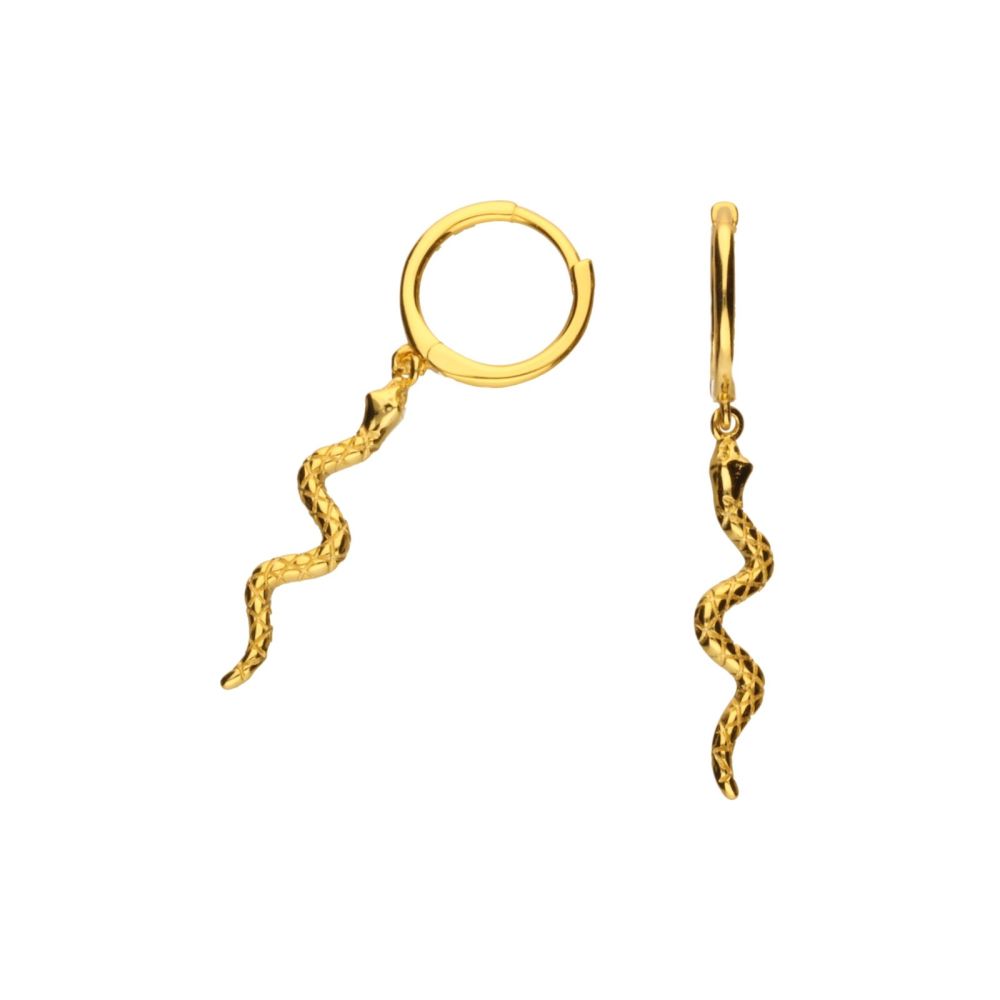 OHRRINGE AN RINGEN, 925 SILBER, VERGOLDET MIT 24 KARAT GOLD, GESAMTLÄNGE DER OHRRINGE 35 mm, SCHLANGE, ABENDESSEN, DURCHMESSER DER RINGE 11 mm.