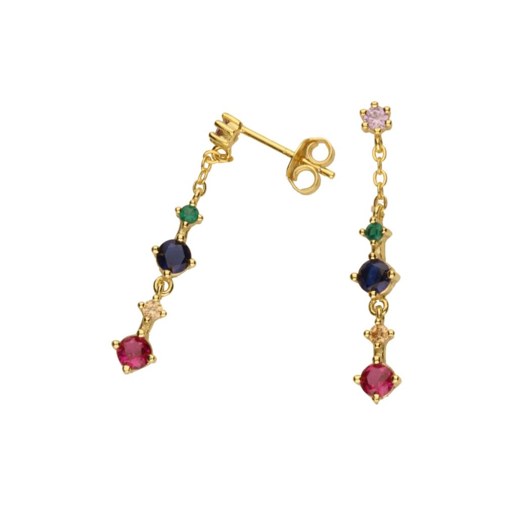 HÄNGENDE STAB-OHRRINGE, 925 STERLINGSILBER, 24 KARAT VERGOLDET, BUNTES ZIRKONIA, OHRRINGLÄNGE 30 mm.