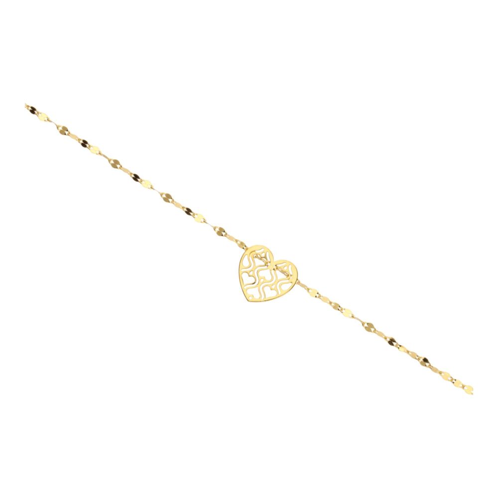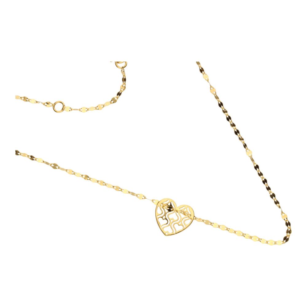 HALSKETTE AN MOKA-KETTE, 585 GOLD, LÄNGE 42 cm + 3 cm VERLÄNGERUNG, DURCHGEBRACHTES HERZ, GRÖSSE 12 mm x 12 mm, 14 K.