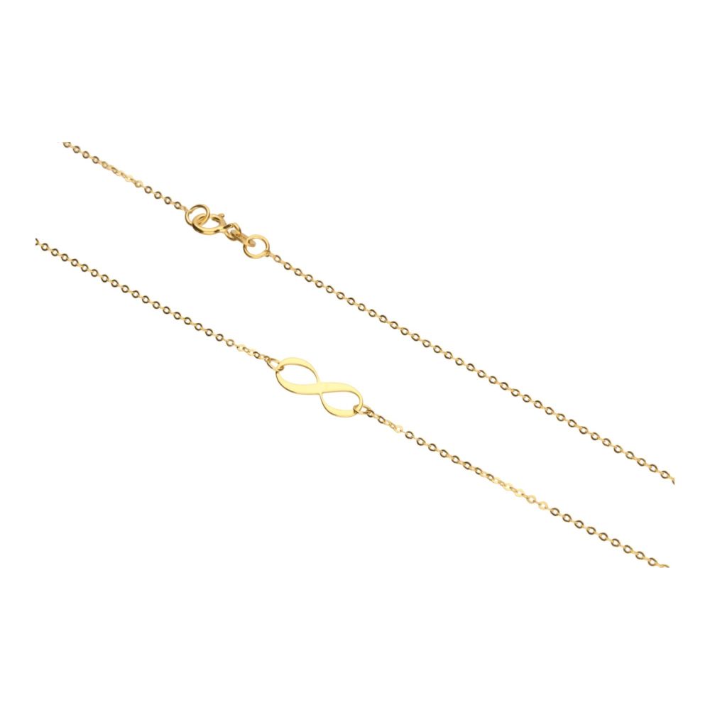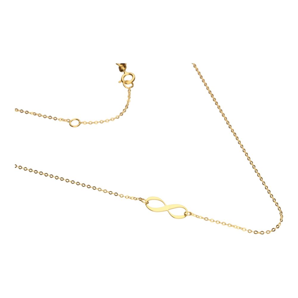 HALSKETTE AN ANGER-KETTE, 585 GOLD, LÄNGE 42 cm + 3 cm VERLÄNGERUNG, FLACHE UNENDLICHKEIT, ABMESSUNGEN 5 mm x 14 mm, 14 K.