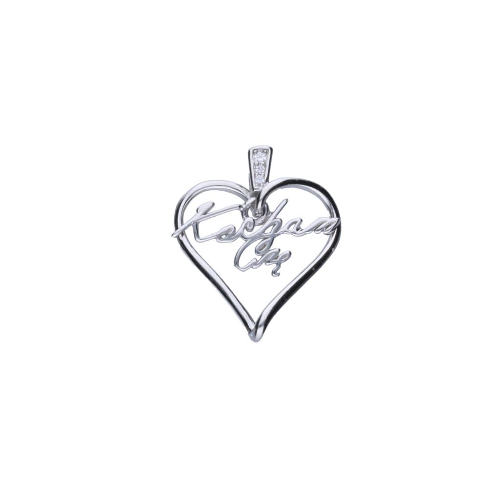 ANHÄNGER MIT DER ANWEISUNG „ICH LIEBE DICH“, 925 SILBER, RHODINIERT, WEISSER ZIRKONIA, HERZGRÖSSE 17 mm X 21 mm.