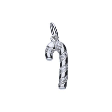 ANHÄNGER, 925 SILBER, RHODINIERT, WEISSER ZIRKONIA, WEIHNACHTSZUCKERDOSE, GRÖSSE 7 mm X 16 mm OHNE BAND.