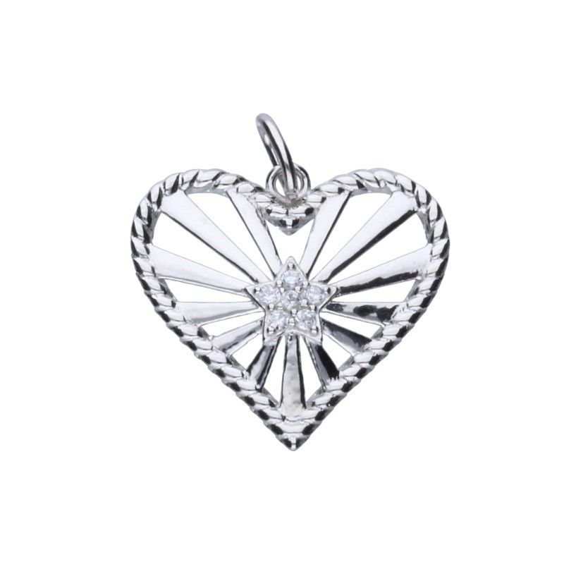 Durchbrochener Anhänger, 925er Silber, rhodiniert, weißer Zirkon, Stern, Herzgröße 18 mm x 19 mm, ohne Krawatte.