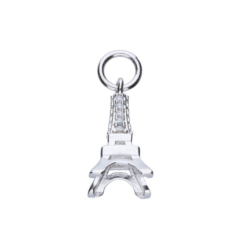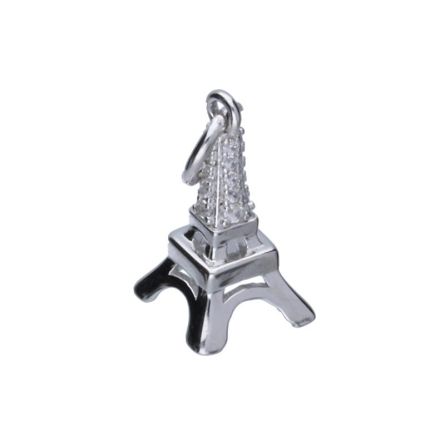 RÄUMLICHER ANHÄNGER, EIFFELTURM, 925 SILBER, RHODINIERT, WEISSES ZIRKONIA, ANHÄNGERABMESSUNGEN OHNE BAND 8 mm x 15 mm.