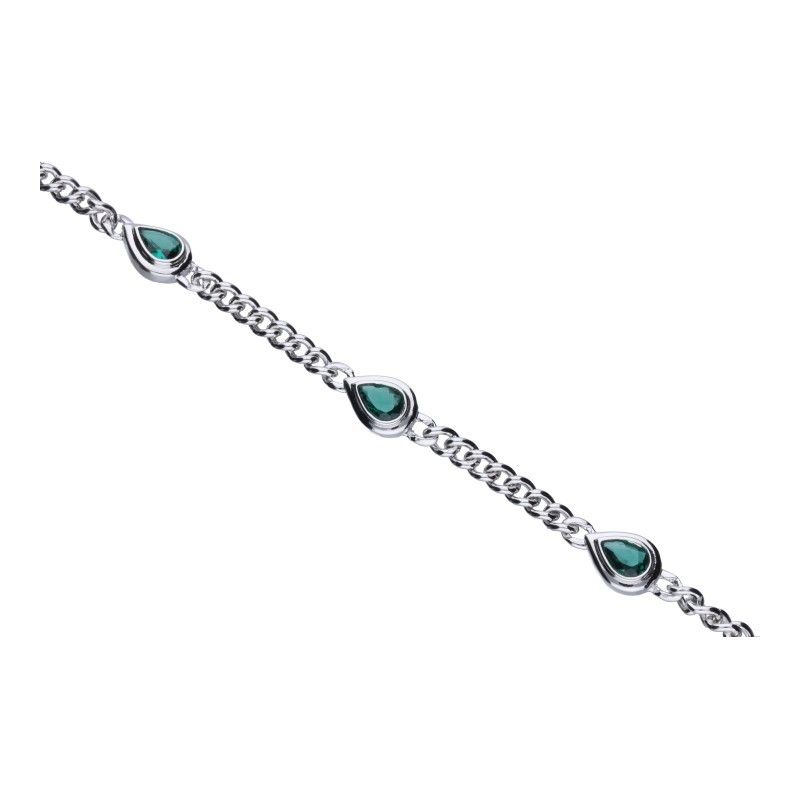 ARMBAND AN EINER RÜSTUNGSGEWEBEKETTE, 925 SILBER, RHODINIERT, LÄNGE 16 cm + 3 cm VERLÄNGERUNG, SMARAGD-ZIRKONIA, GRÖSSE 7 mm X 10 mm, MIT RAHMEN, TRÄNE, MANDEL.