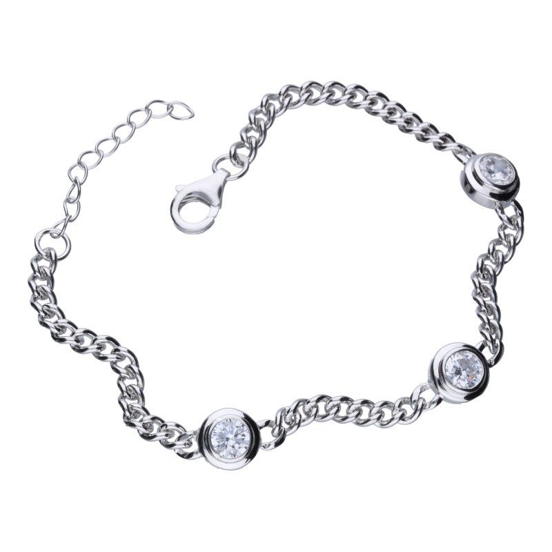 ARMBAND AN EINER PANZERKETTE, 925 SILBER, RHODINIERT, LÄNGE 16 cm + 3 cm VERLÄNGERUNG, WEISSER ZIRKONIA MIT EINEM DURCHMESSER VON 8 mm, KETTENBREITE 3,5 mm.