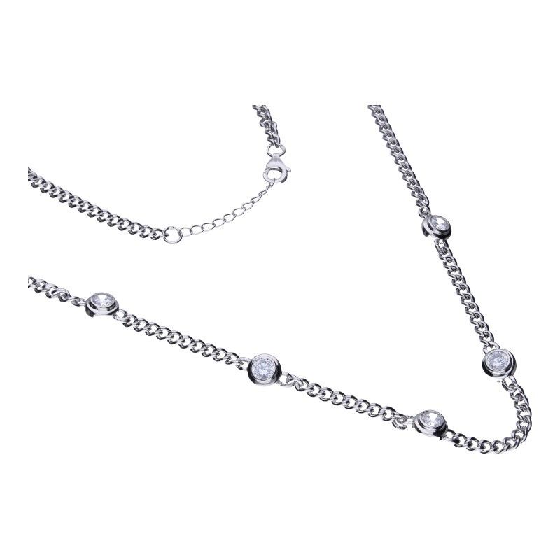 HALSKETTE AN EINER RÜSTUNGSKETTE, 925 SILBER, RHODINIERT, LÄNGE 45 cm + 5 cm VERLÄNGERUNG, WEISSER ZIRKONIA, DURCHMESSER 8 mm, KETTENBREITE 3,5 mm.