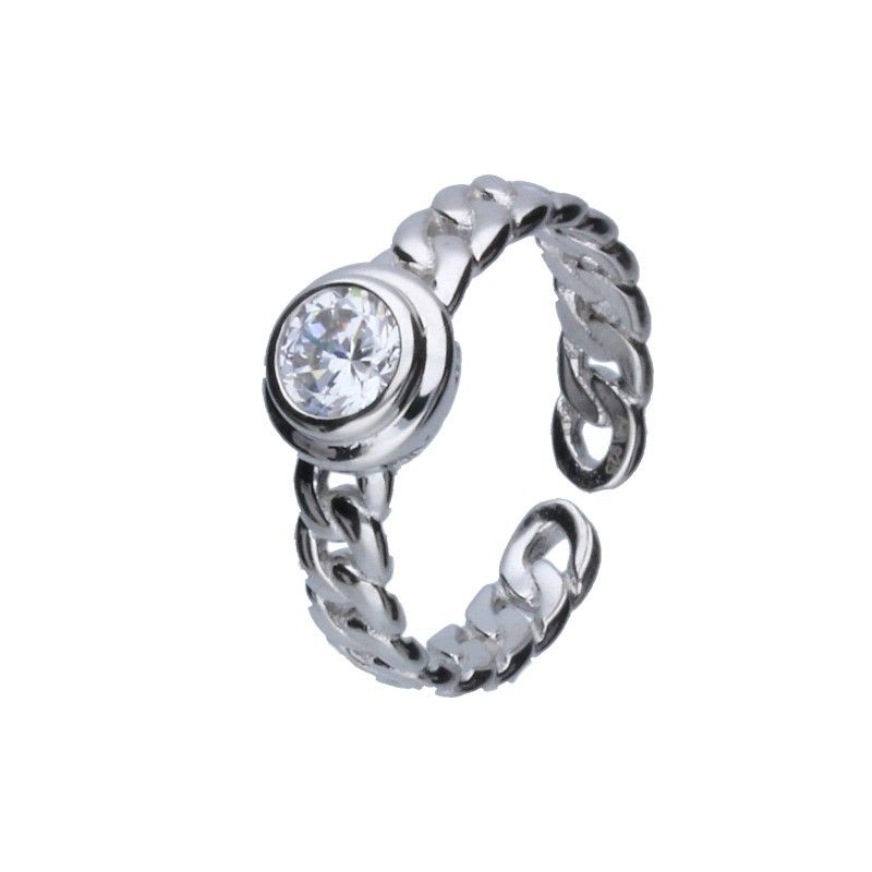 VERSTELLBARER RING, 925 SILBER, RHODIUMBESCHICHTET, RUNDER WEISSER ZIRKONIA, 7 mm DURCHMESSER, MIT RAHMEN, PANZERUNG.