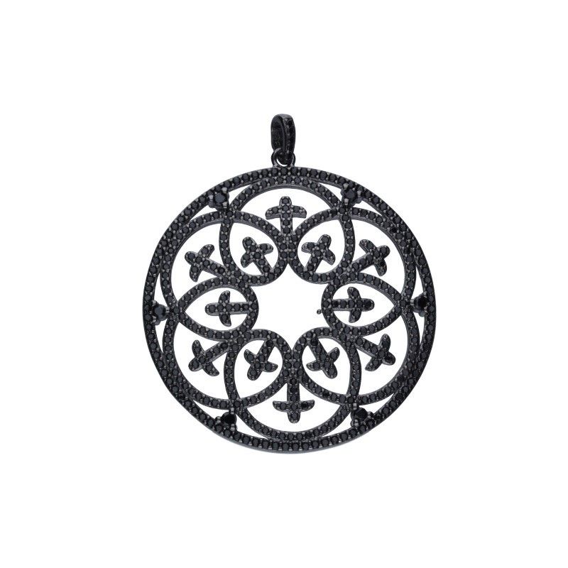 DURCHGEBRACHTER ANHÄNGER, 925er SILBER, rhodiniert, SCHWARZES ZIRKONIA, KREUZE, ANHÄNGERDURCHMESSER OHNE BAND 40 mm.