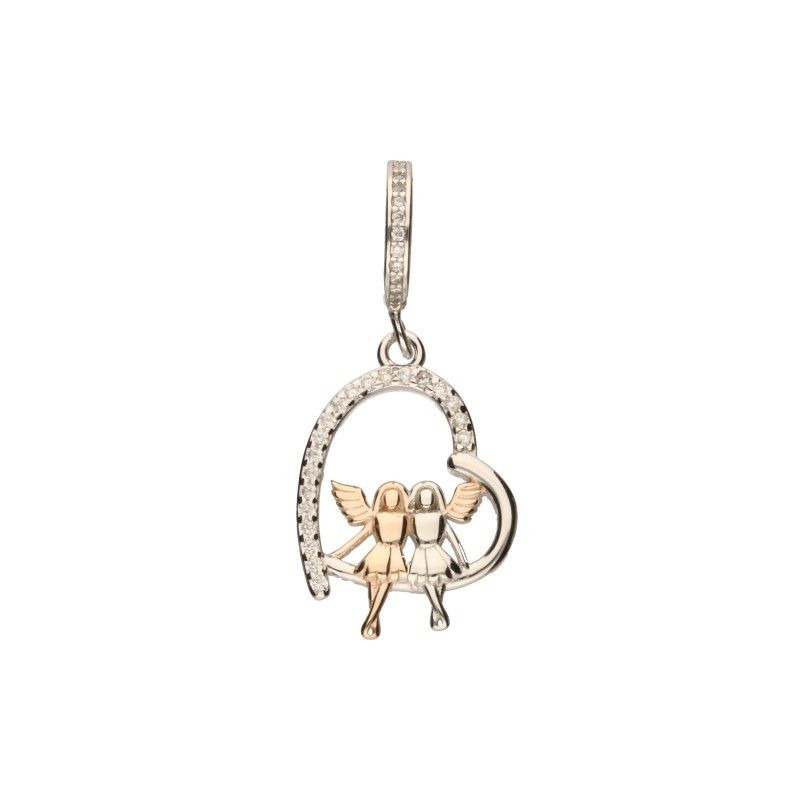 PERLEN-HÄNGEANHÄNGER PASST ZU MODULARARMBÄNDERN MIT EINEM MAX. DURCHMESSER VON 3 mm, KOMBINATION AUS 925er SILBER, RHODINIERT MIT ROSA VERGOLDET, WEISSEM ZIRKONIA, ENGEL, ENGEL, HERZ