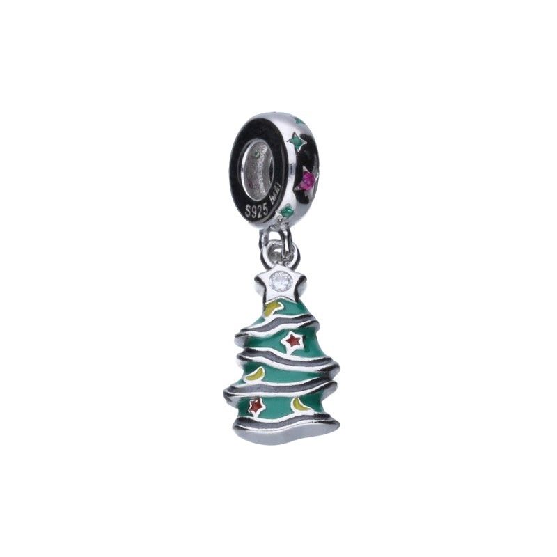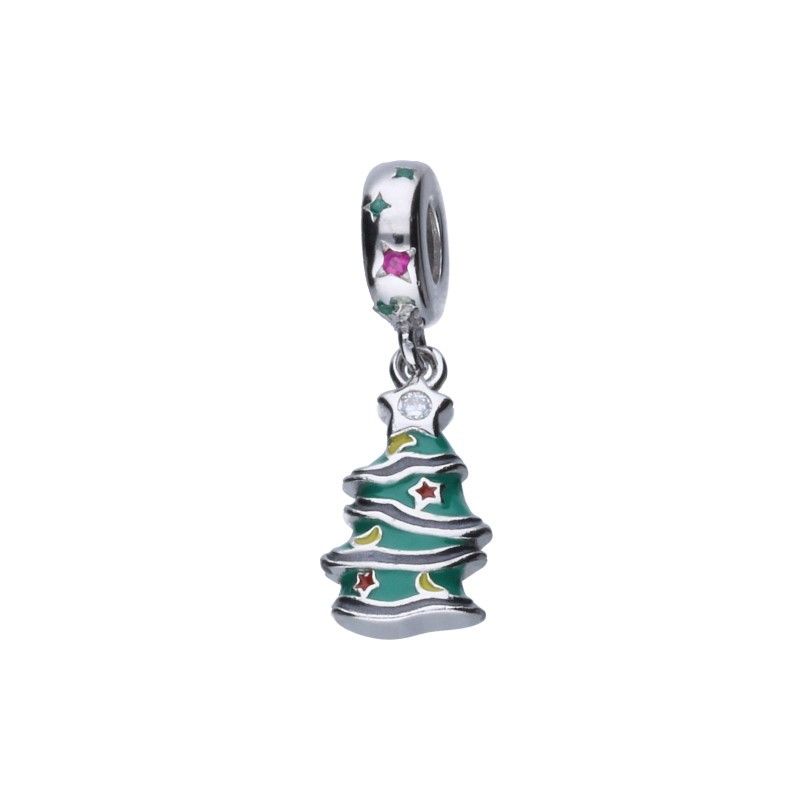ANHÄNGER IN PERLENFORM, GEEIGNET FÜR MODULARE ARMBÄNDER MIT EINEM MAX. DURCHMESSER VON 3 mm, 925er SILBER, RHODINIERT, WEISSES ZIRKONIA, BUNTE EMAILLE, WEIHNACHTSBAUM
