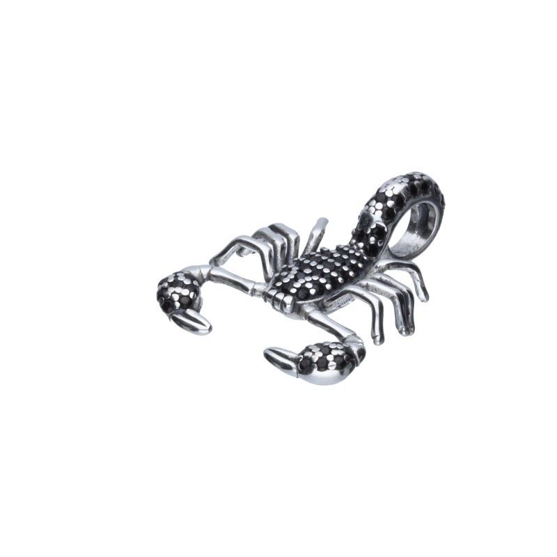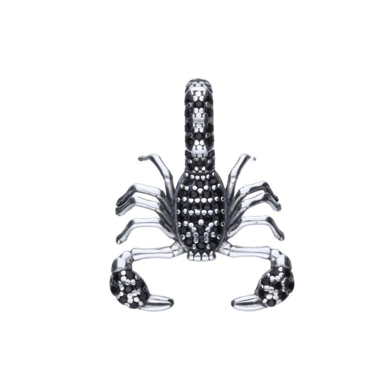 Der Perlenanhänger passt zu modularen Armbändern mit einem maximalen Durchmesser von 3 mm, 925er Silber, rhodiniert, schwarzer Zirkon, Skorpion