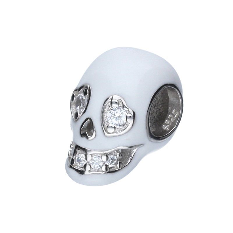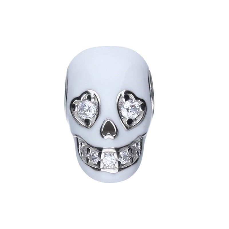 PERLENANHÄNGER GEEIGNET FÜR MODULARE ARMBÄNDER MIT EINEM MAX. DURCHMESSER VON 3 mm, 925er SILBER, RHODIUMBESCHICHTET, WEISSER ZIRKONIA, TOTENKOPF, TOTENKOPF.