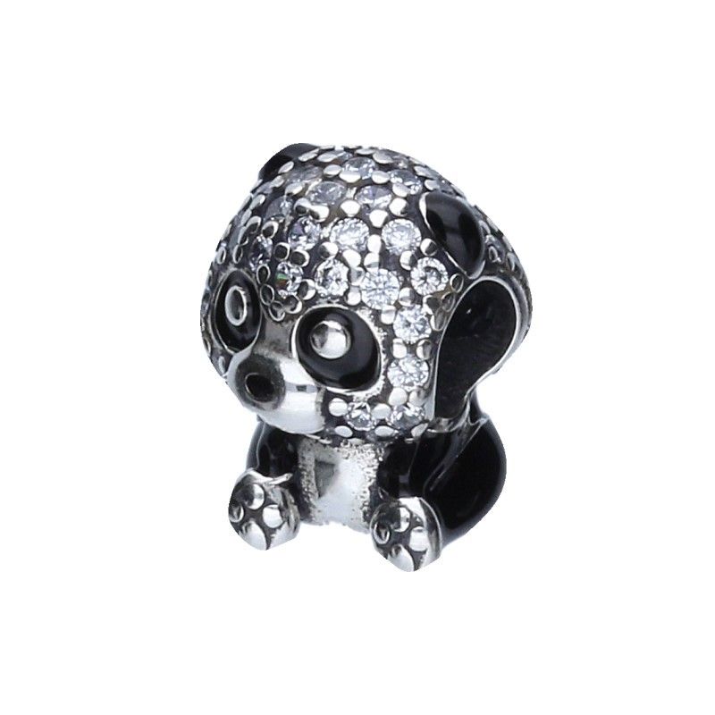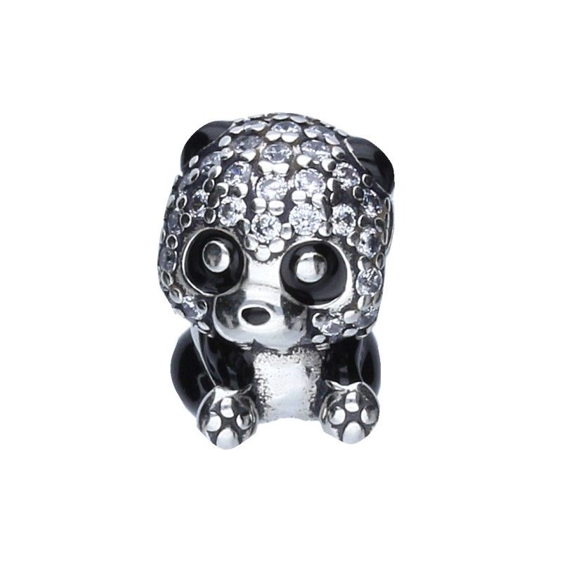 PERLENANHÄNGER GEEIGNET FÜR MODULARE ARMBÄNDER MIT EINEM MAX. DURCHMESSER VON 3 mm, 925er SILBER, RHODIUMBESCHICHTET, WEISSER ZIRKONIA, PANDA.