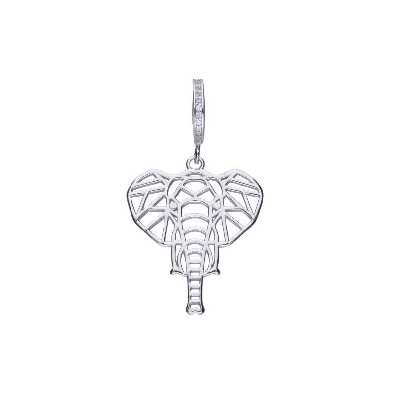 ANHÄNGER IN PERLENFORM, GEEIGNET FÜR MODULARE ARMBÄNDER MIT EINEM MAXIMALEN DURCHMESSER VON 3 mm, 925er SILBER, RHODIUMBESCHICHTET, WEISSES ZIRKONIA, DURCHGEBLENDETER ELEFANT.