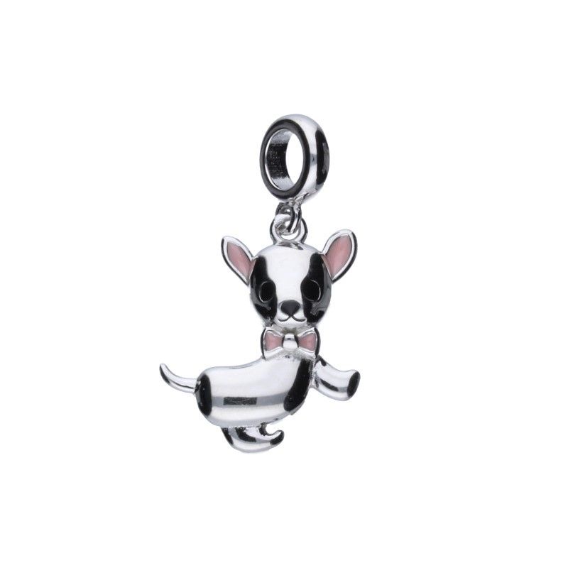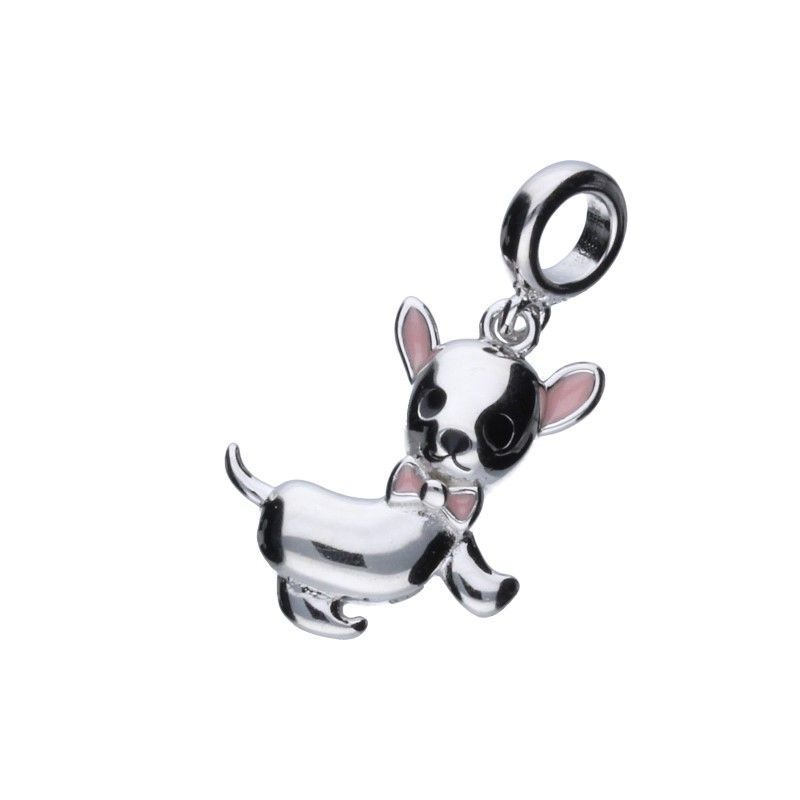 PERLENANHÄNGER, PASST ZU MODULARARMBÄNDERN MIT EINEM MAX. DURCHMESSER VON 3 mm, 925er SILBER, RHODIUMBESCHICHTET, ROSA UND SCHWARZE EMAILLE, HUND.