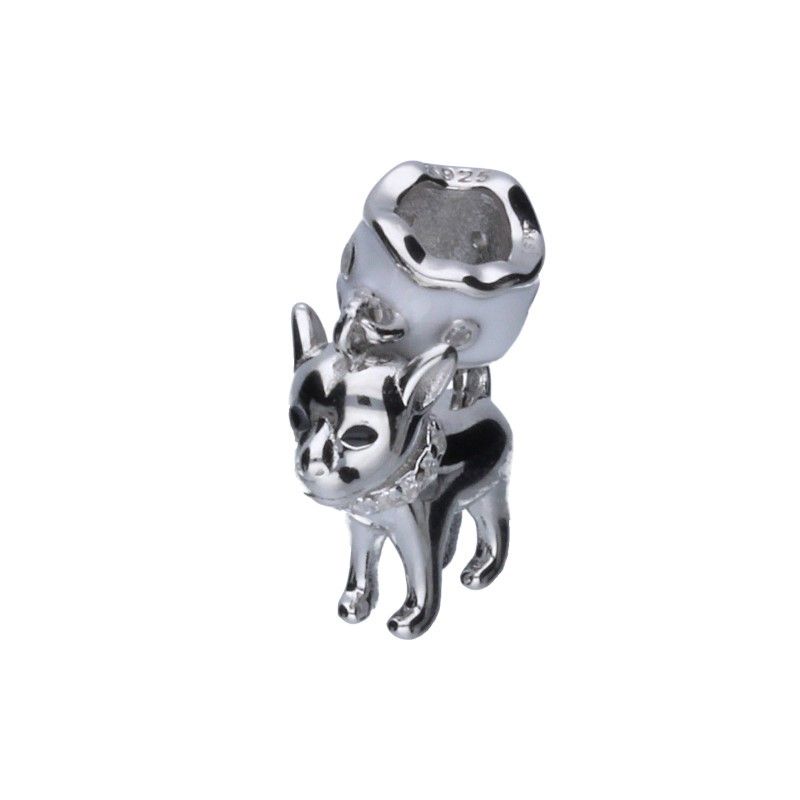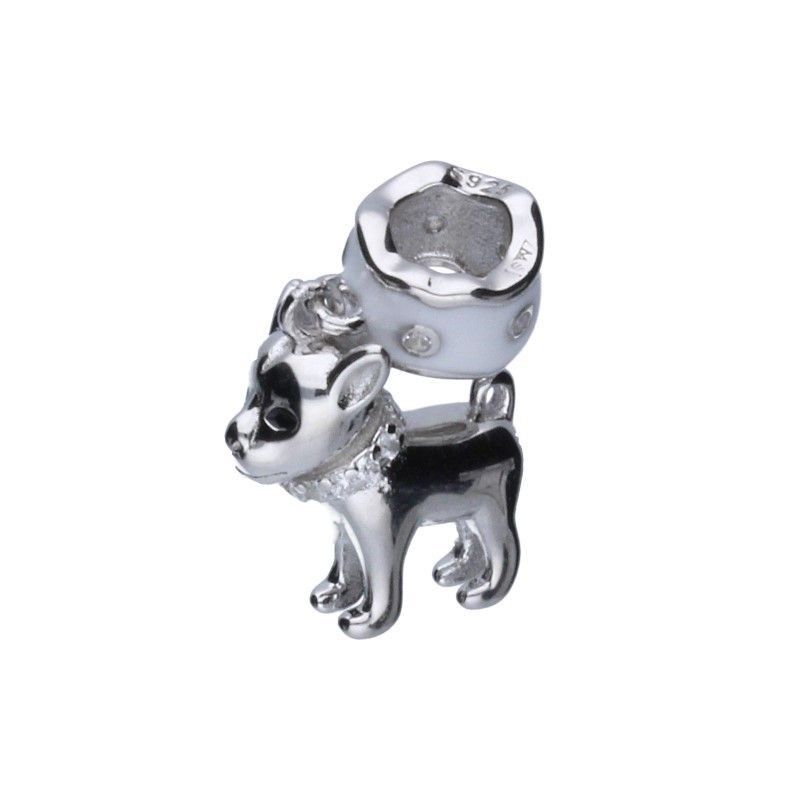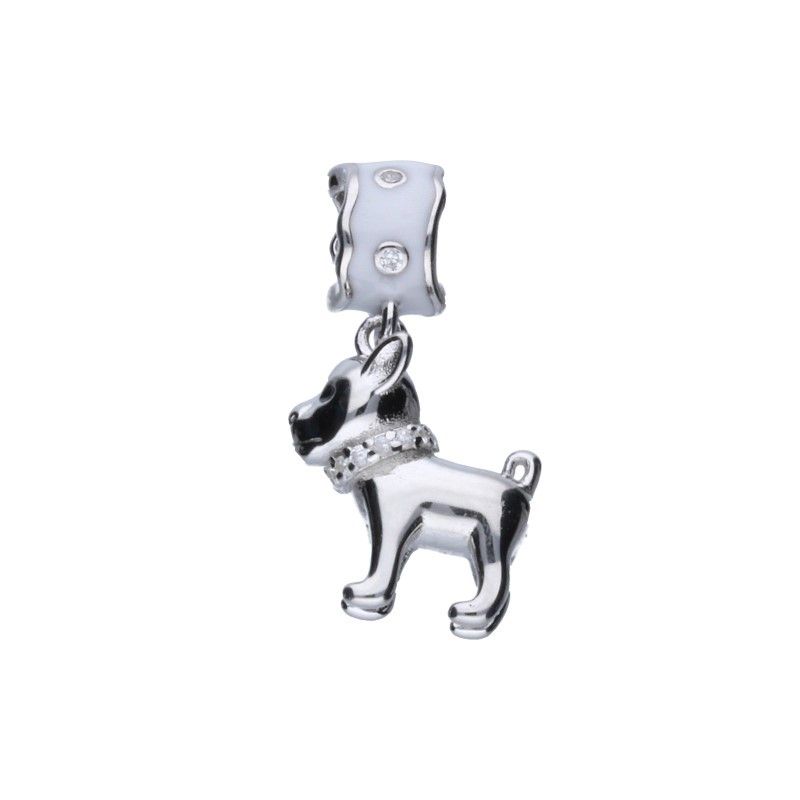 ANHÄNGER IN PERLENFORM, GEEIGNET FÜR MODULARE ARMBÄNDER MIT EINEM MAX. DURCHMESSER VON 3 mm, 925er SILBER, RHODIUMBESCHICHTET, WEISSE EMAILLE, WEISSES ZIRKONIA, HUND.